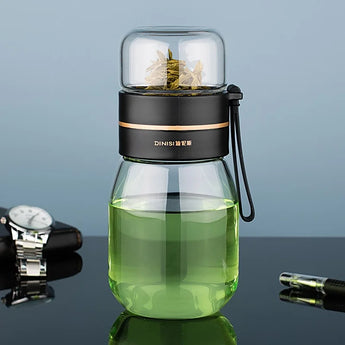Gourde infuseur en verre — infusion fraîche ou chaude où que vous soyez. Compacte, filtre intégré, goût préservé. Emmenez votre thé partout, prêt en 5 min.